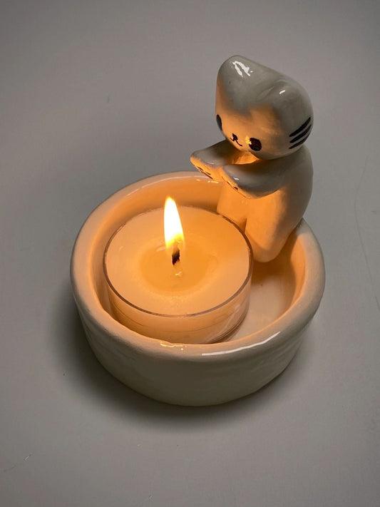 Cartoon Kitten Candle Holder